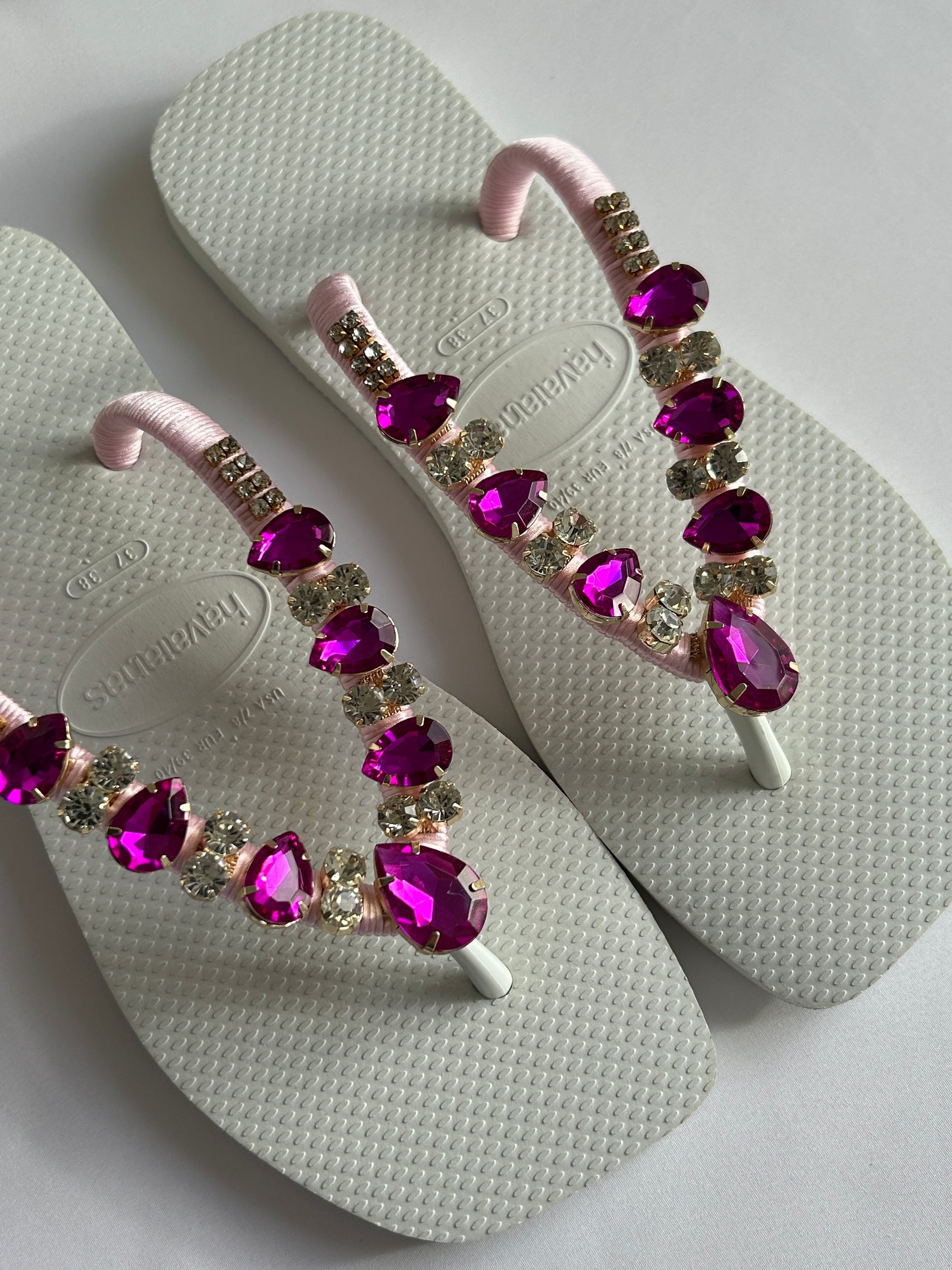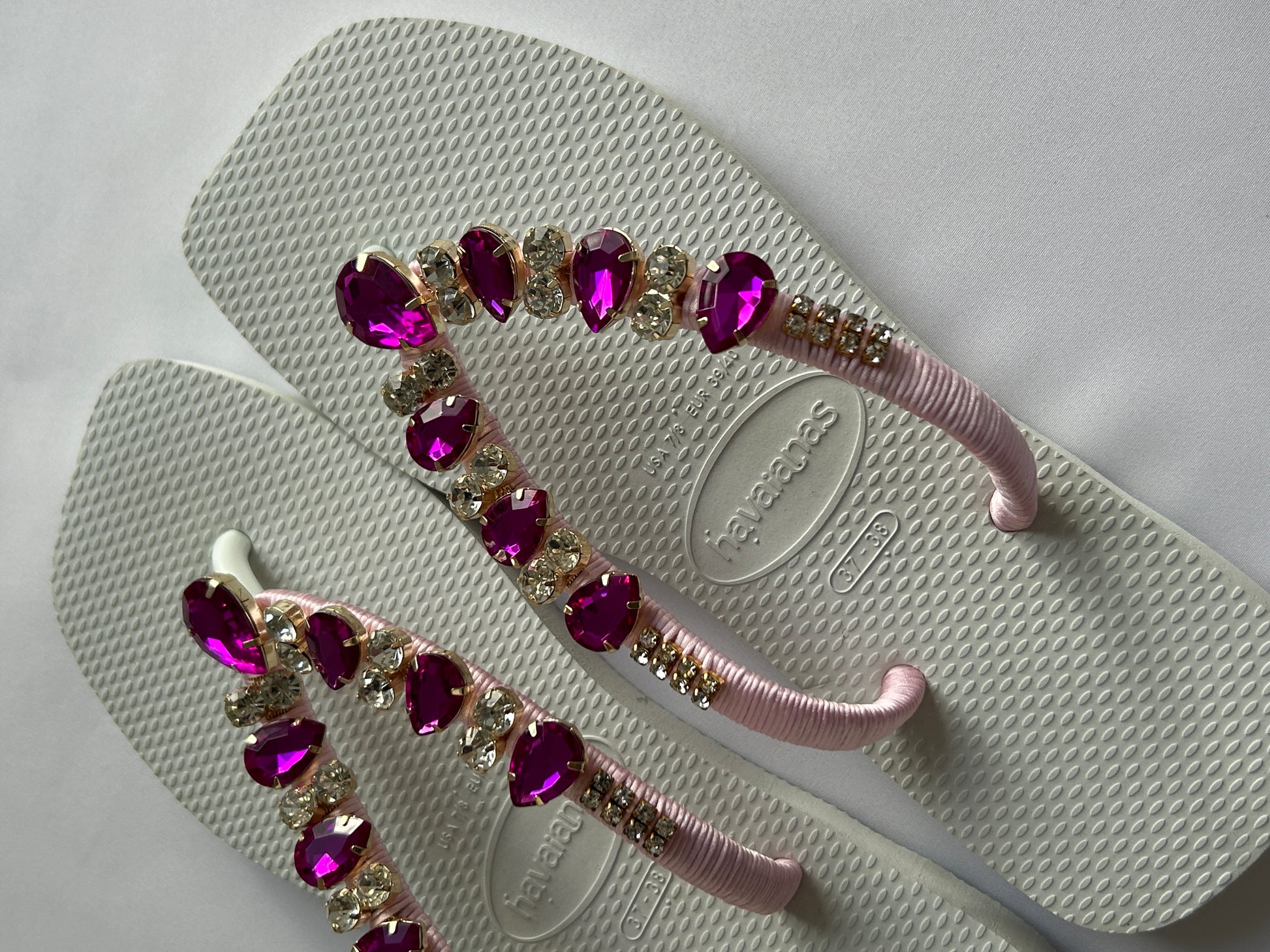 Tongs Havaianas Luxe Femme – Blanches avec Pierres Roses Chic